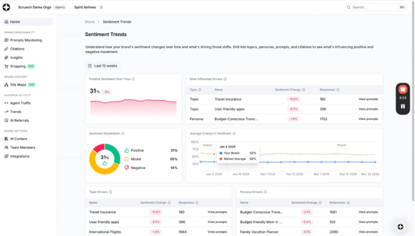 Why It Stands Out: Clean interface and quick setup enable immediate insights. Sentiment analysis reveals how ai bots characterize your brand.