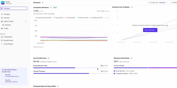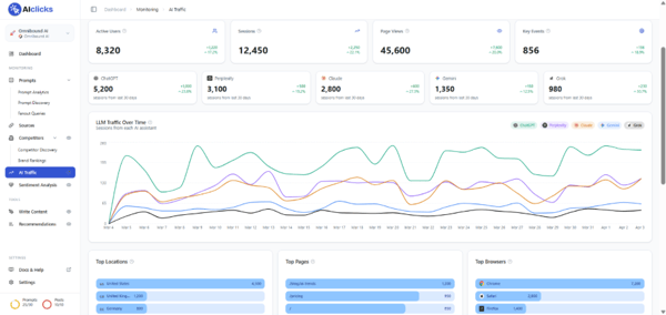 GEO management, sentiment analysis, traffic attribution |
