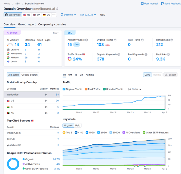 Integration with SEO ecosystem, AI Overviews tracking, period-to-period analysis |