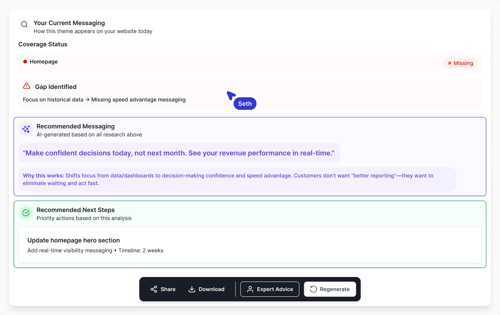 Complex B2B decisions involve multiple stakeholders who all perceive value differently. Using an AI positioning and messaging tool allows us to tailor these narratives to different personas while maintaining a consistent core story.
